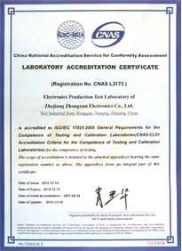 同時公司檢測中心獲得了CNAS權威認可,產品都經過CNAS檢測中心上萬次的嚴格檢測。公司維持158項CNAS認可項目資質,參加能力驗證16項/次,全部獲得滿意結果。